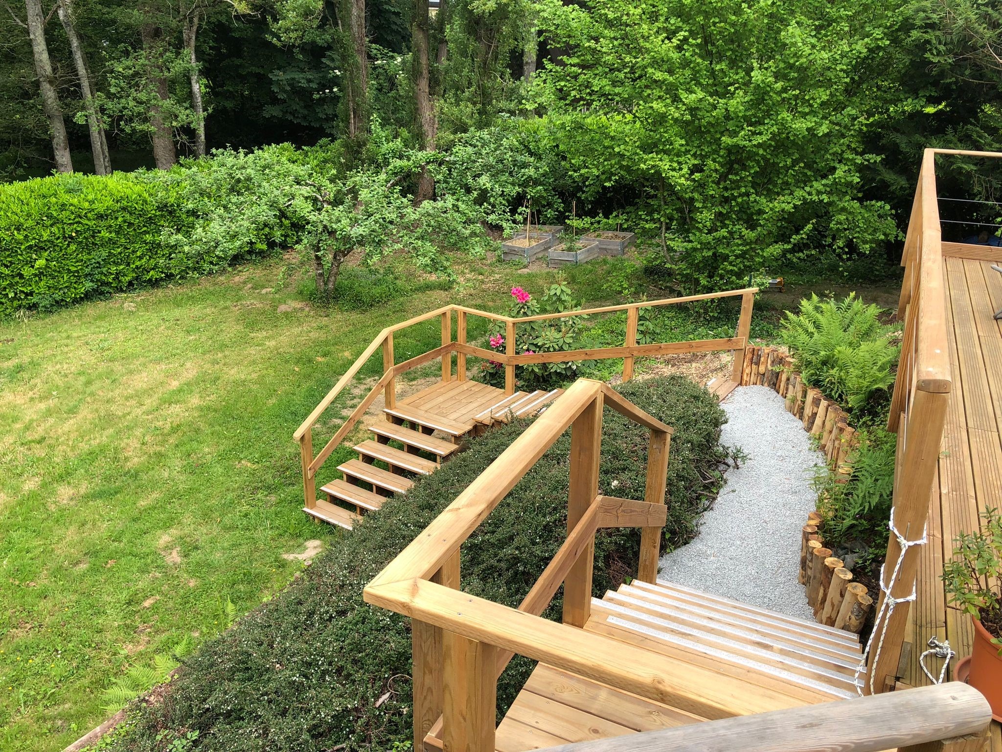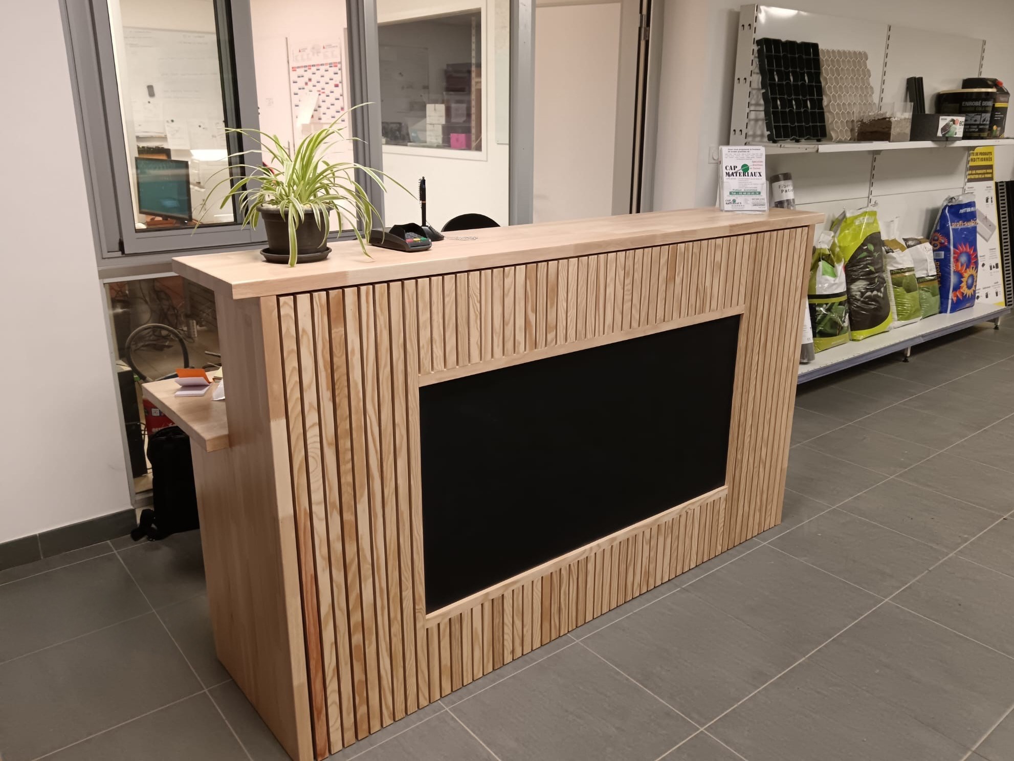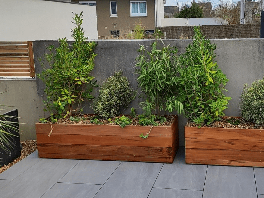Nous réalisons du mobilier en bois adapté à tous les styles et toutes les utilisations : tables et bancs, jardinières, comptoirs d’accueil, escaliers, habillages de coffrets techniques, …