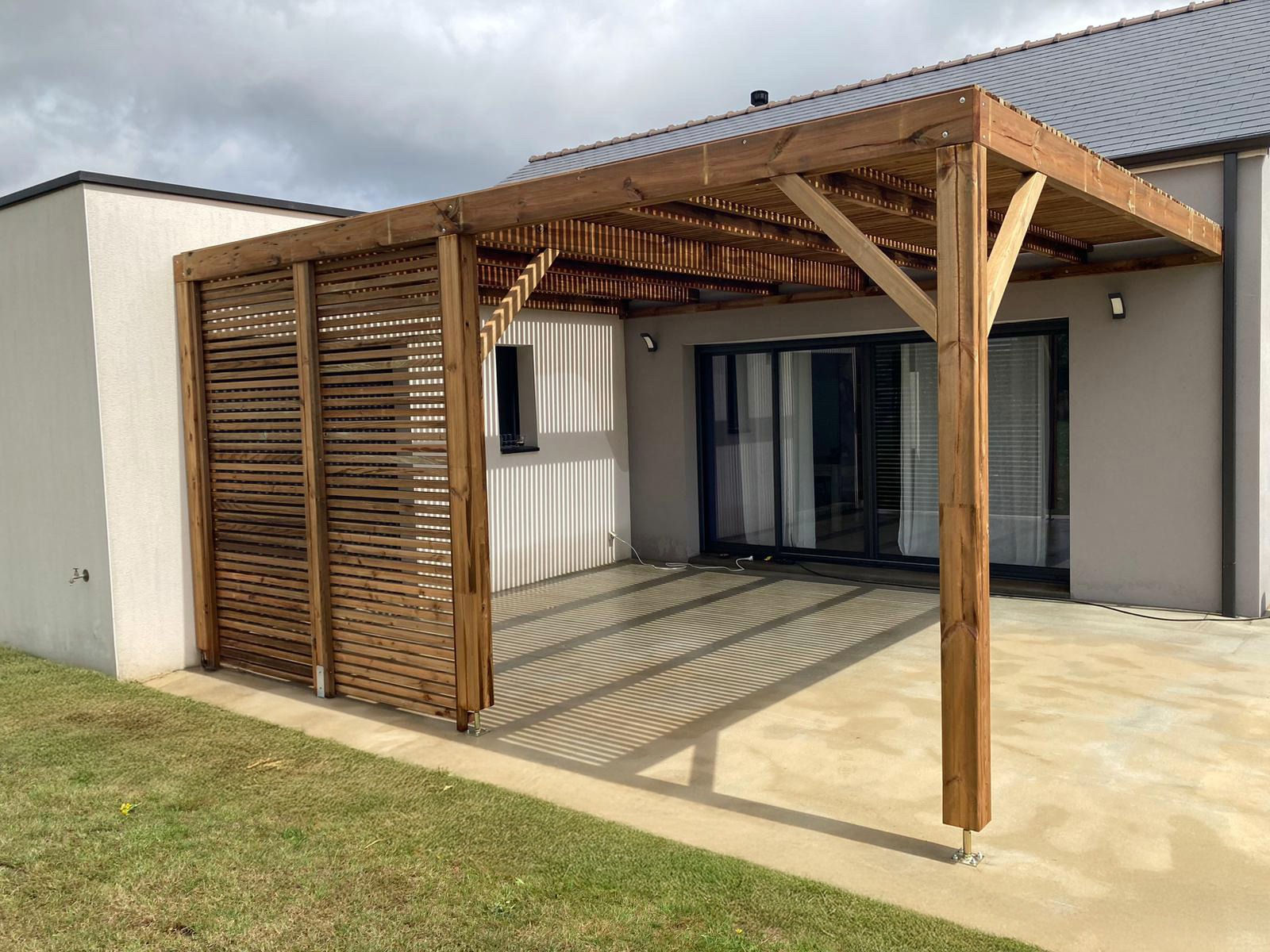 Pergola adossée : Fixée à la façade, idéale pour prolonger votre maison avec élégance.